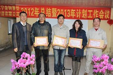 2013年1月25日下午,我公司隆重召開2012年度工作總結表彰大會。全體員工參加了此次會議。大會對2012年度三名優秀生產一線員工、五名技術創新能手及各項競賽獲獎人員進行了表彰和頒獎。