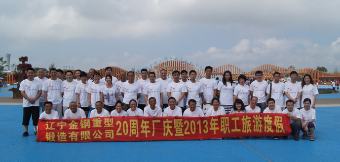 2013年7月,金鋼鍛造迎來了建廠20周年大慶。7月30日,公司全體機關人員及工作十年以上工人共計40余人來到錦州世博園旅游度假,同時召開了2013年上半年度工作總結大會。